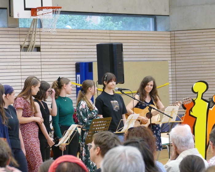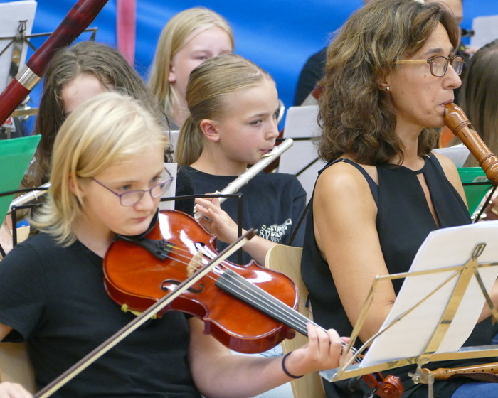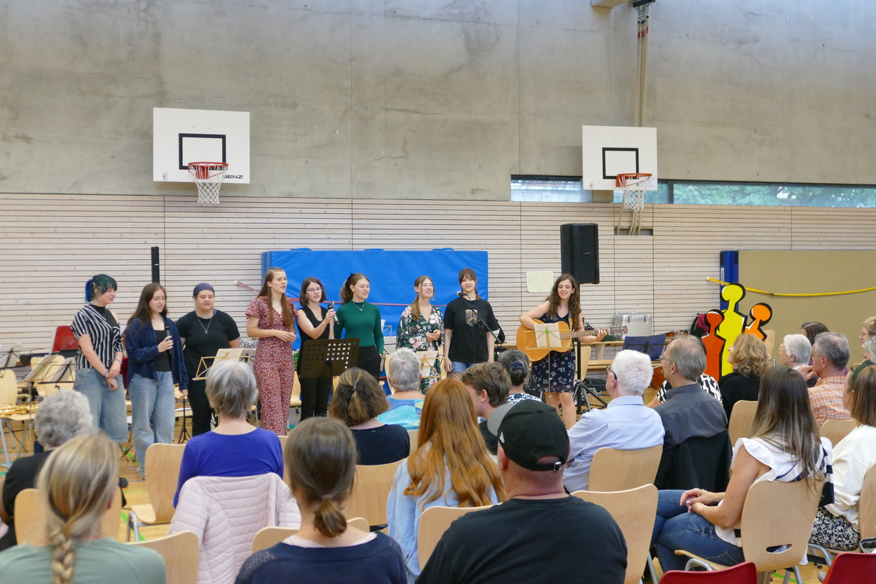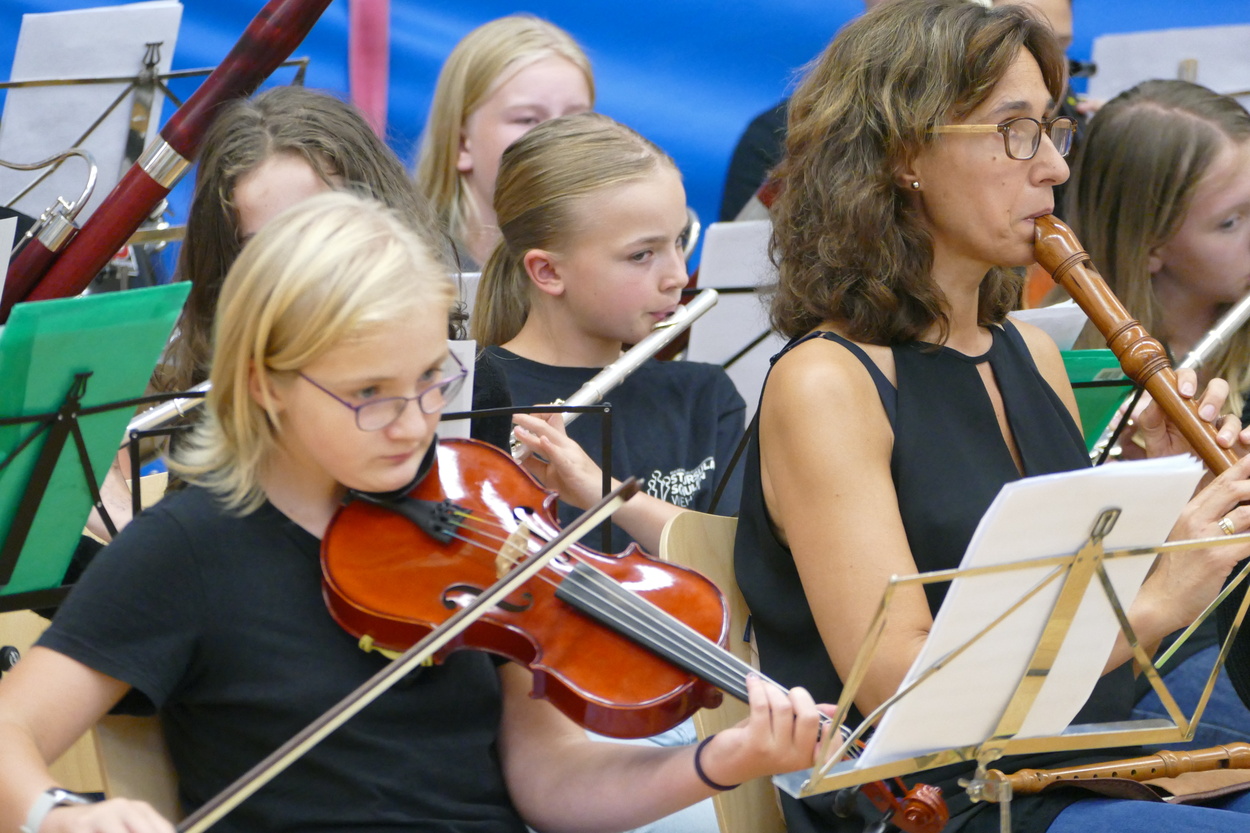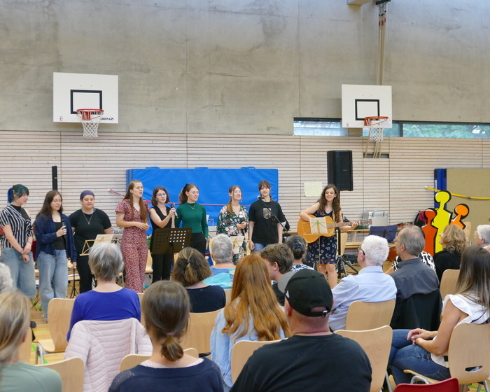 Gymmi, richtig motiviert und mit ordentlich Talent. Dann haben die kleinen Fünfer und Sechser richtig süß paar Musical-Sachen abgezogen, am 24. und 25. Juli geht's los.. War richtig cute, die Crowd hat gefeiert. Das Orchester? Voll nice! Die Schüler und auch die Lehrer waren impressed Und pass auf, richtig krasser Move: Der alte Schulleiter, der Herr Pfister, hat noch mal abgeliefert, bevor er Tschüss sagt. Hat sich einfach reingemixt ins Orchester und da ganz locker mitgespielt. Hat den jungen Musiker*innen