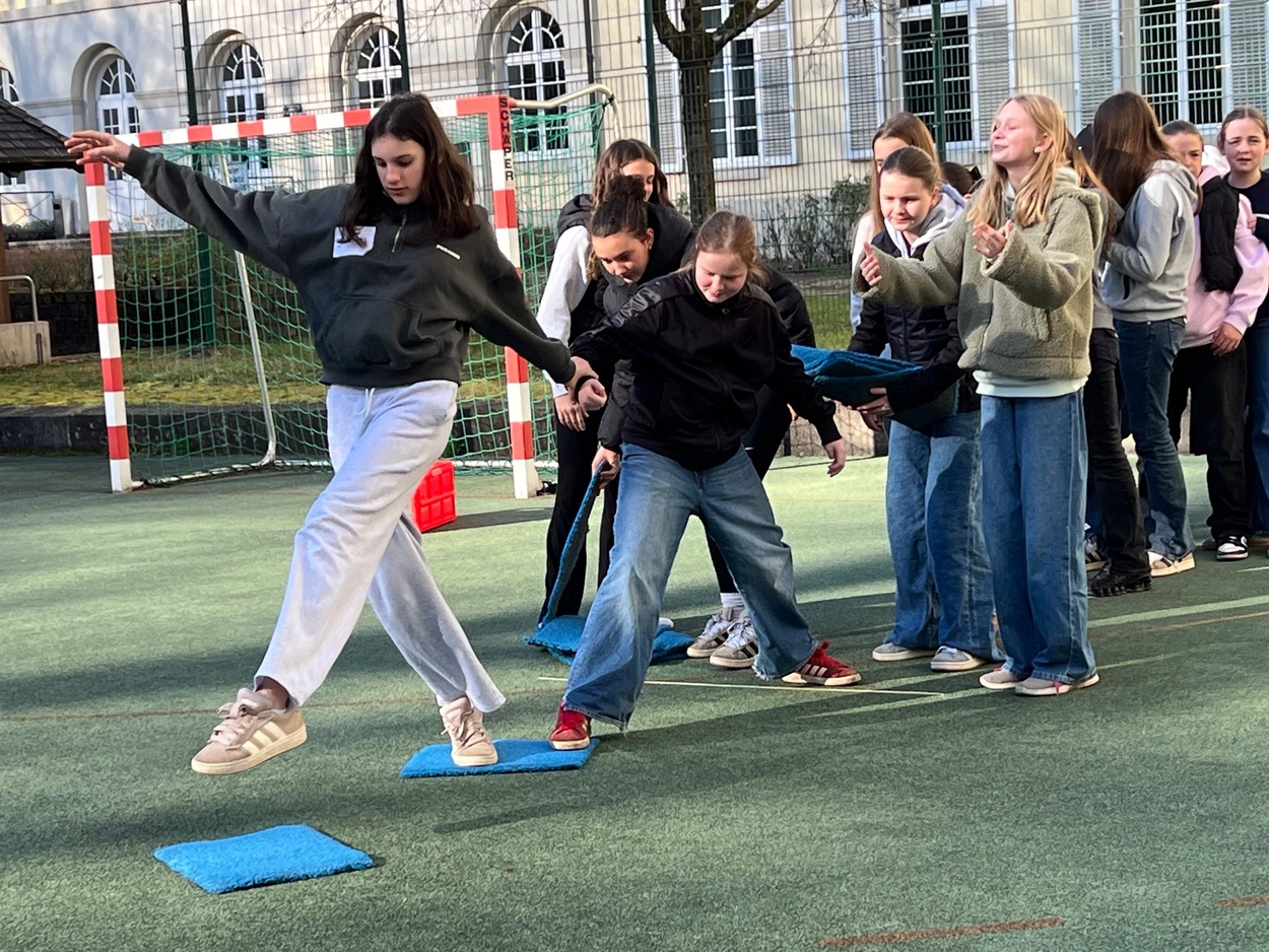 Am 3. März 2026 verbrachte die Klasse 7b einen Vormittag zum Themenblock „Klassengemeinschaft-Rücksicht-Kommunikation“ unter der Leitung des Jugendreferenten Herrn Jakob Bopp.Die Schülerinnen lösten knifflige Aufgaben als Team und lernten neue gruppendynamische Spiele kennen. Wir verbrachten bei strahlendem Frühlingswetter einen kurzweiligen, interessanten und lustigen Vormittag.