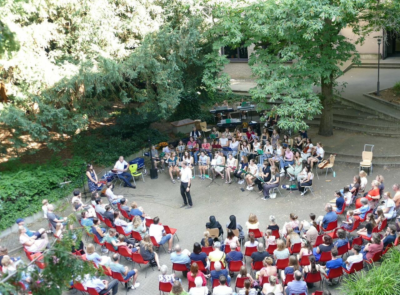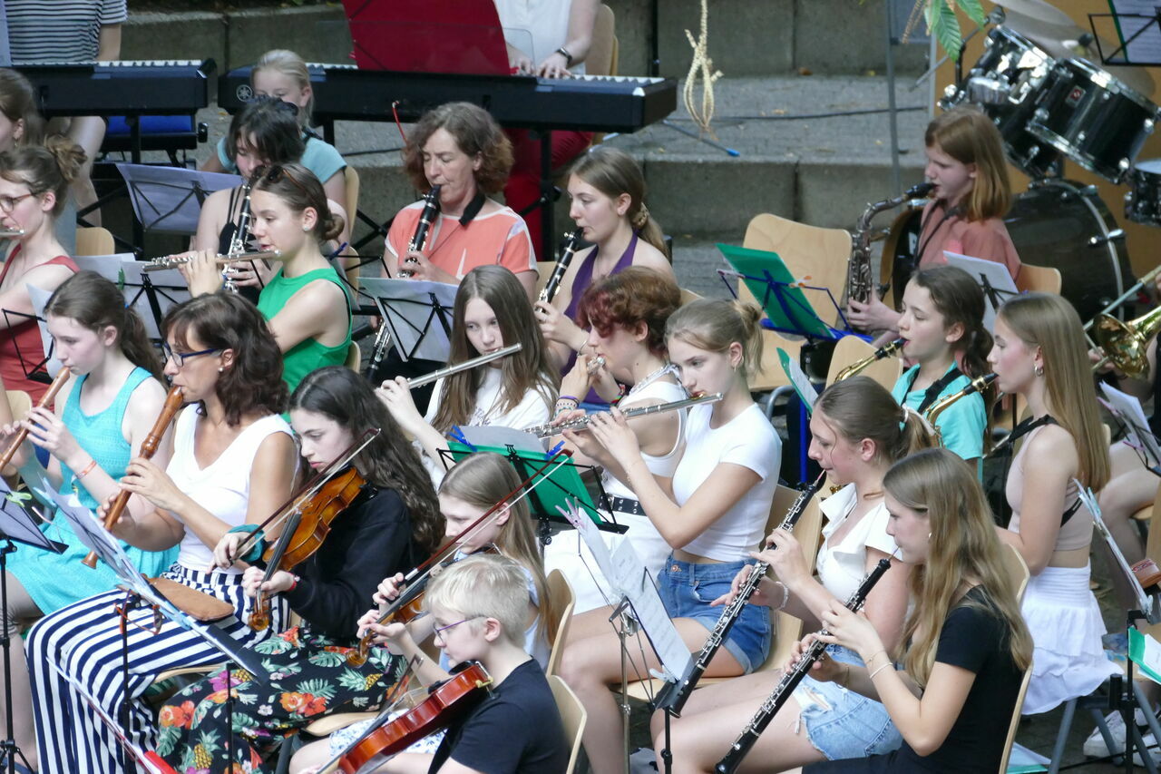 Mit unseren Auftritten gestalten wir musikalisch das Jahr an der Schule: Weihnachten, Schulgottesdienste, Infoabende bis hin zum Sommerkonzert am Schuljahresende Zielgruppe: Alle, die am Schulleben teilhaben und ein Instrument spielen, sind zum Proben und Musizieren im Schulorchester eingeladen. Jede Schülerin, ganz gleich mit welchem Instrument, wird in unser Ensemble eingebunden. Das gilt auch für Musikerinnen, die ihr Instrument noch nicht lange spielen: Noten können nach Rücksprache auch für Anfängerinnen eingerichtet werden.